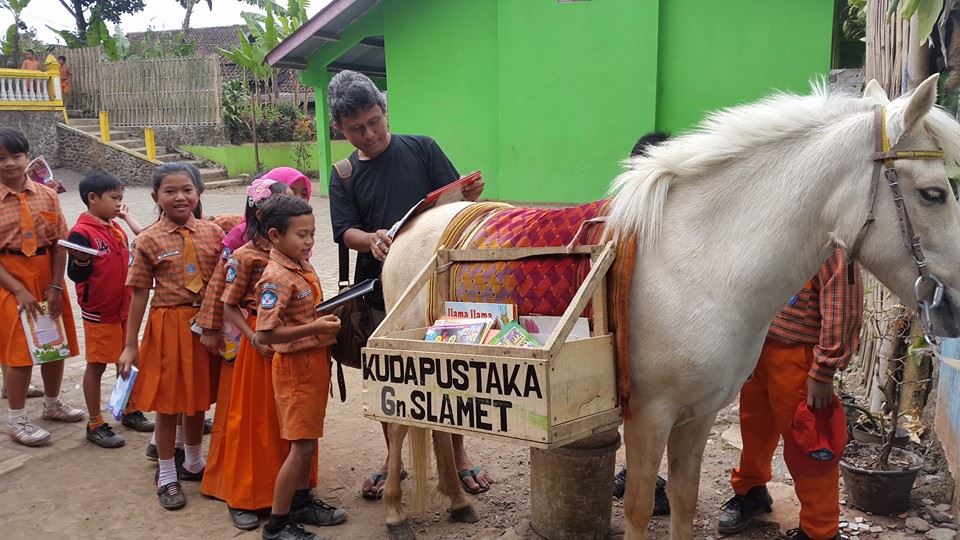 Pengantar: Kalau survei bilang orang Indonesia malas membaca, bagaimana melawannya? Pustaka Bergerak Indonesia, sebuah jejaring perpustakaan keliling swadaya yang diinisiasi secara bertahap sejak 2014, memilih untuk menjemput orang-orang untuk membaca. Langkah yang merupakan kebalikan perpustakaan konvensional yang menunggu pembaca datang.