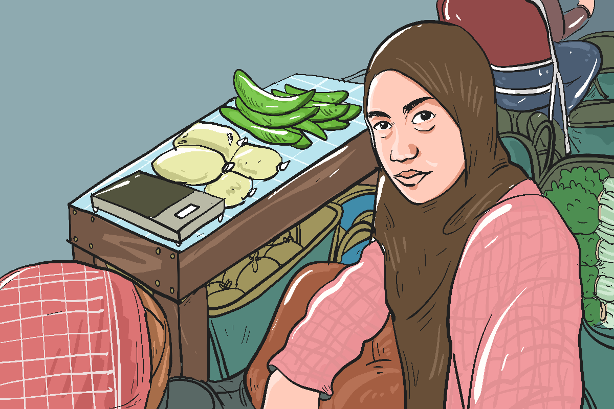 Imroatul Azizah (24) tak pernah membayangkan bisa menjadi pedagang taoge di pasar usai lulus SMA. Padalah, pekerjaan itu sama sekali tak ada dalam daftar tangga kariernya. Setelah lulus SMA, ia langsung mondok seperti saran dari kedua orang tuanya.