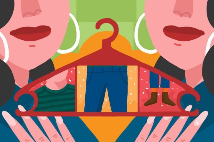 ilustrasi - tips thrifting, memilih baju bagus di Pasar Gembong Surabaya. (Ega Fansuri/Mojok.co)