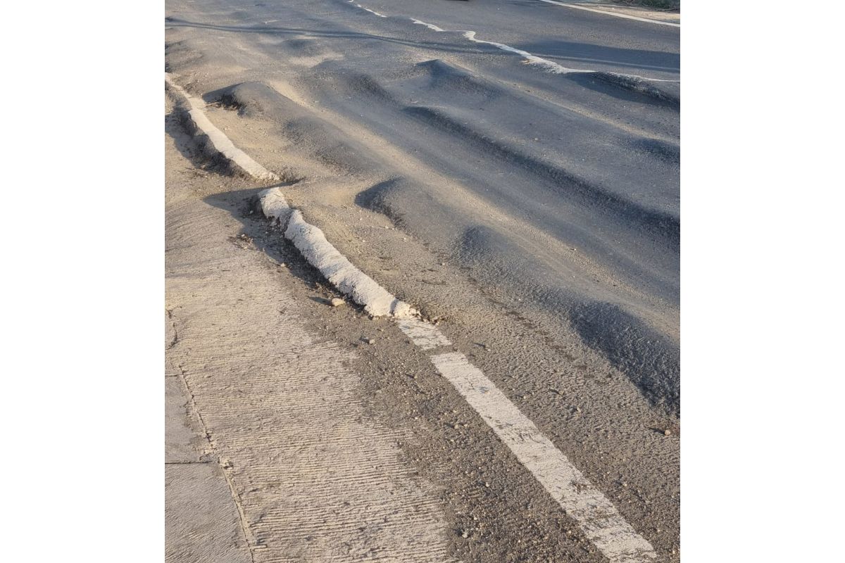 Gini mudahnya. Jalannya jadi tak rata, tapi bentuknya menyerupai ban. Dan itu hanya ada di satu sisi jalan saja. Sisi sebelahnya aman-aman saja.